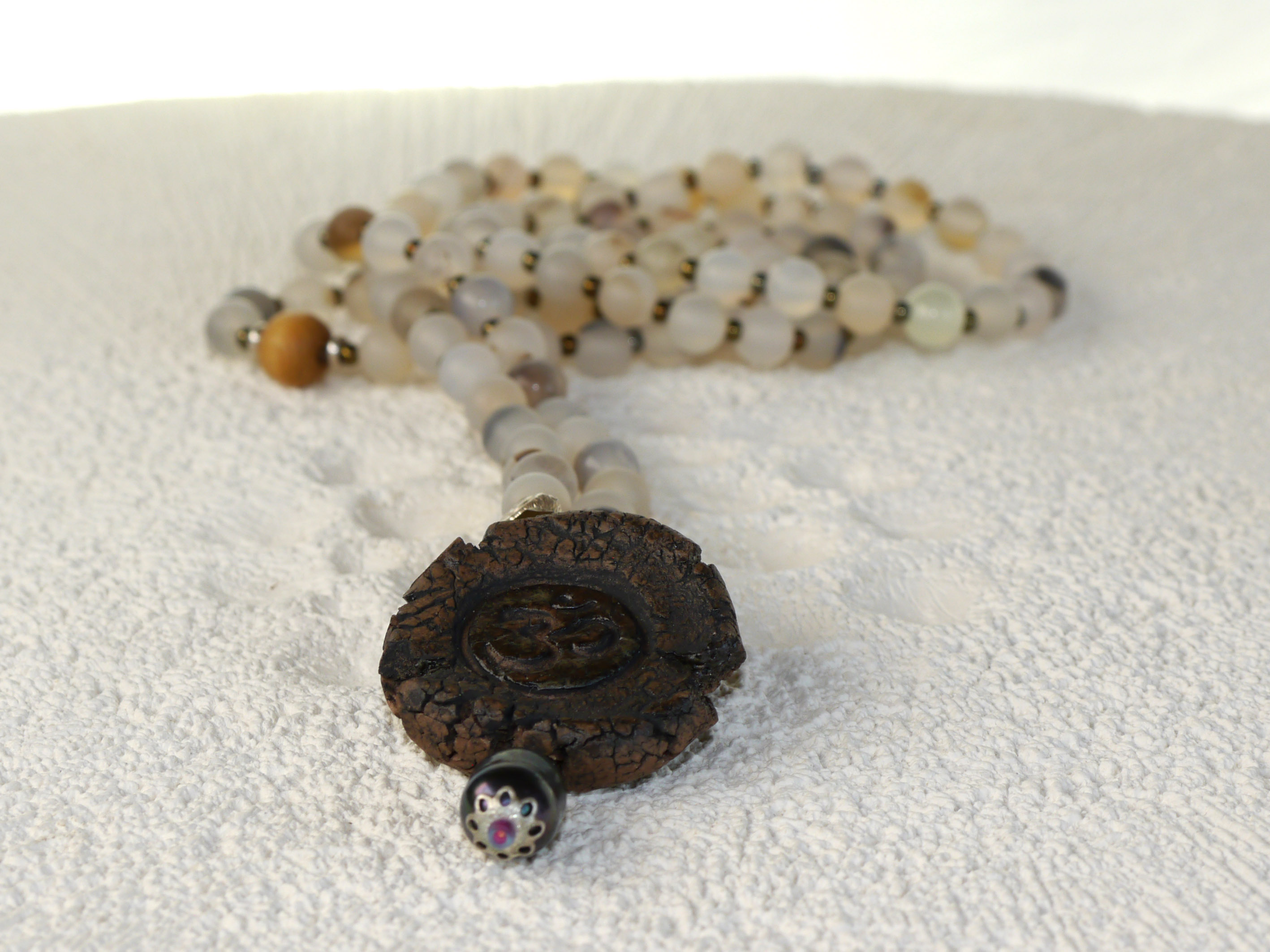 Mala Kette OM 108 Perlen - mit natürlichem Achat grau transparent